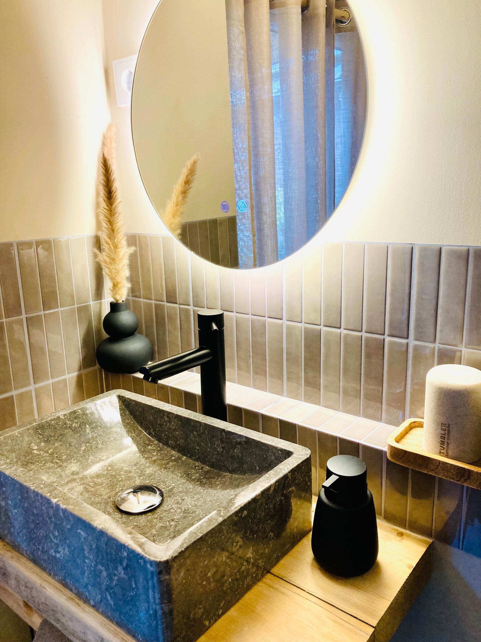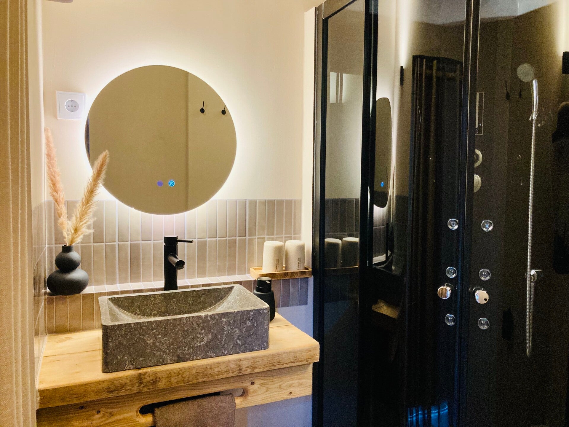 - Een privé badkamer met douche en toilet, badproducten, badjassen, badmuts, föhn, & inclusief badlinnen.